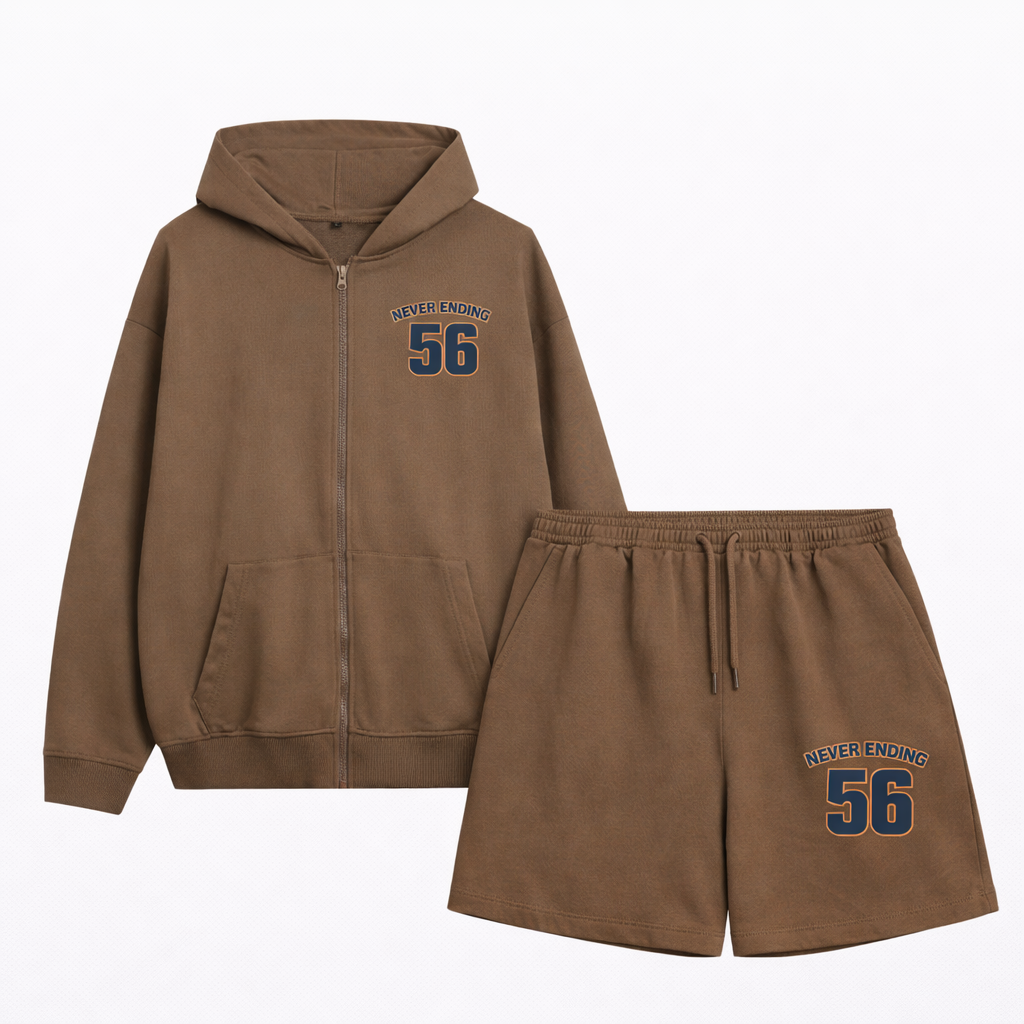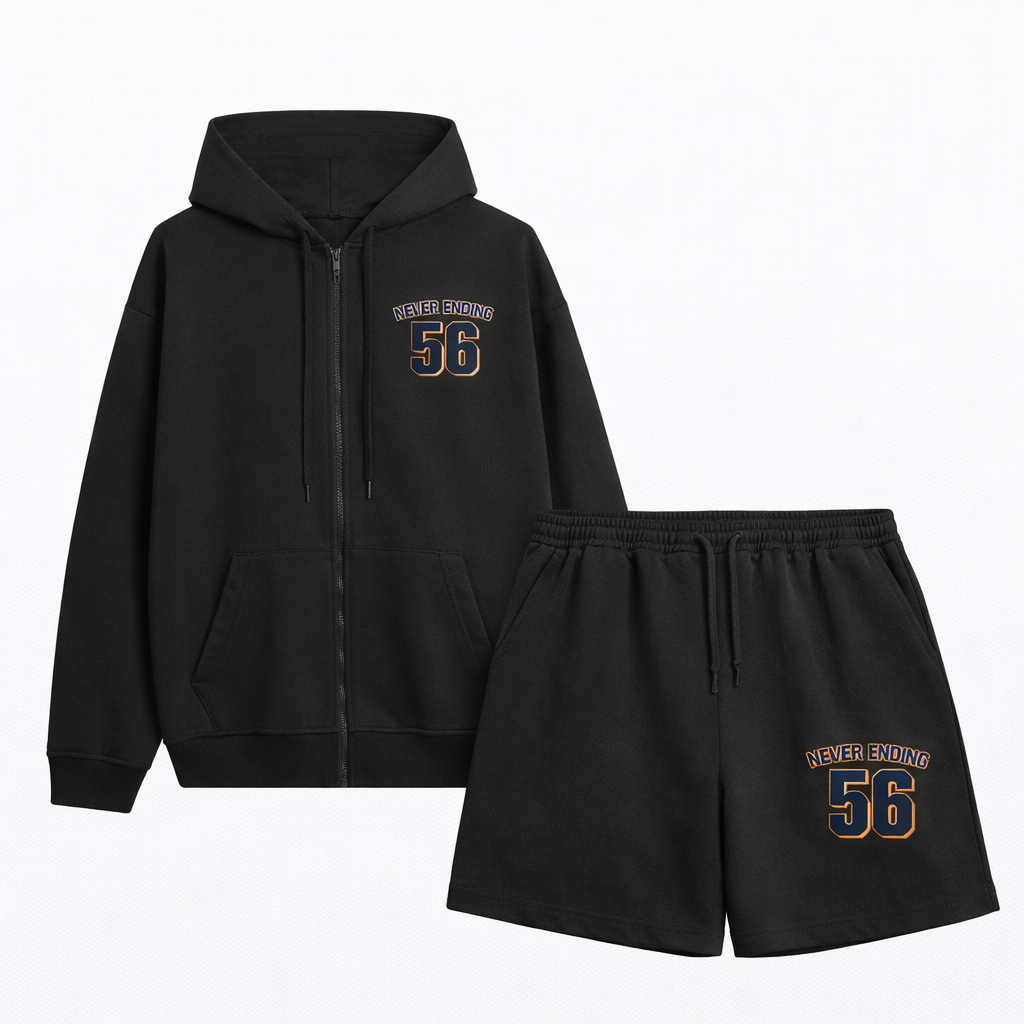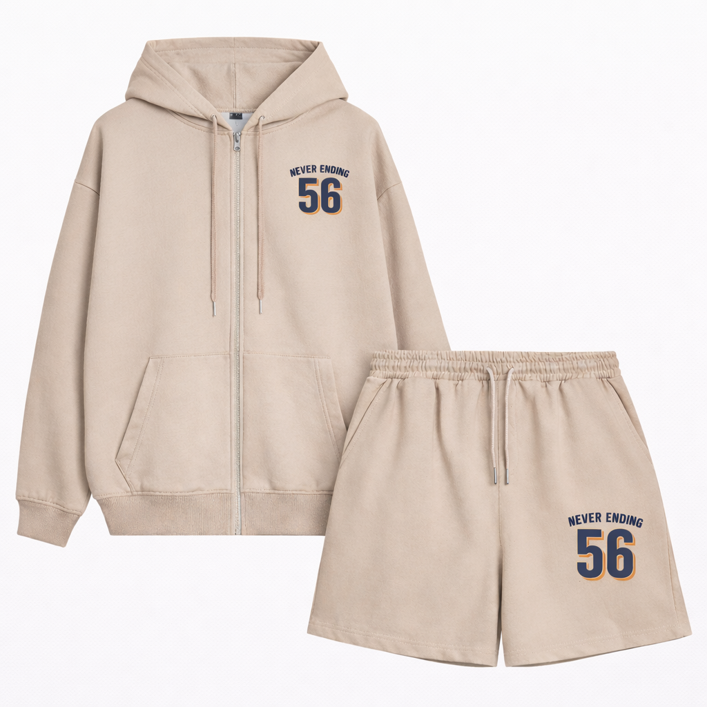 Thiết kế: Hoodie zip + Quần short đồng bộ