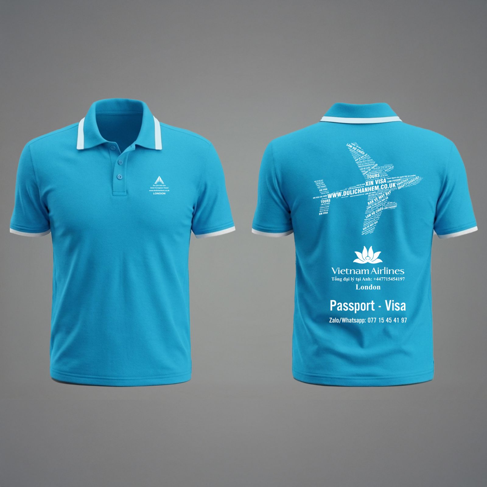 Áo Polo Unisex đồng phục công ty 03 được thiết kế theo phong cách hiện đại – rõ nhận diện – tối ưu quảng bá dịch vụ, phù hợp cho công ty du lịch, đại lý vé máy bay, dịch vụ visa và văn phòng đại diện.