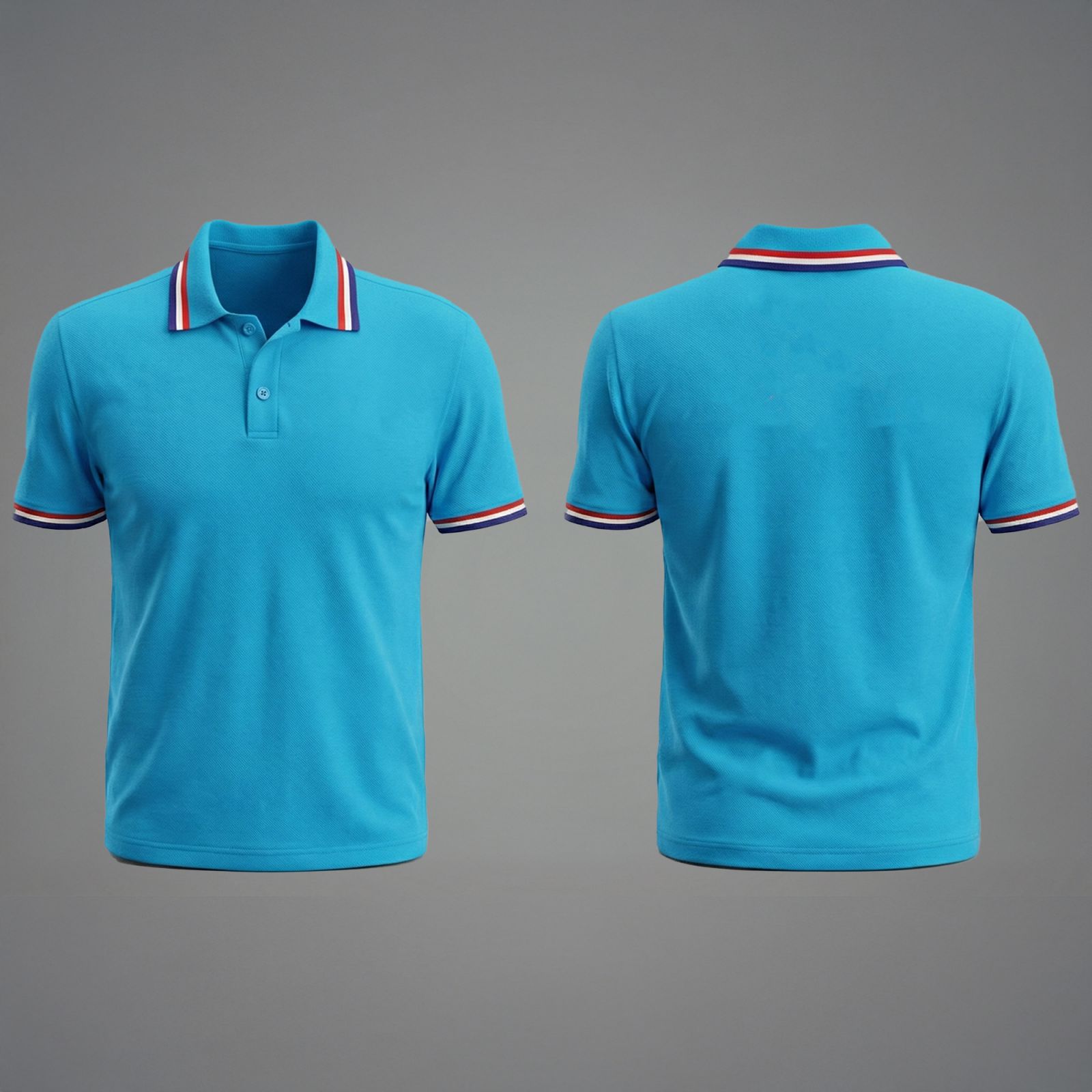 Tone xám trung tính kết hợp phối cổ xanh hiện đại cùng graphic branding nổi bật mặt sau tạo nên một mẫu polo vừa chuyên nghiệp vừa cá tính.