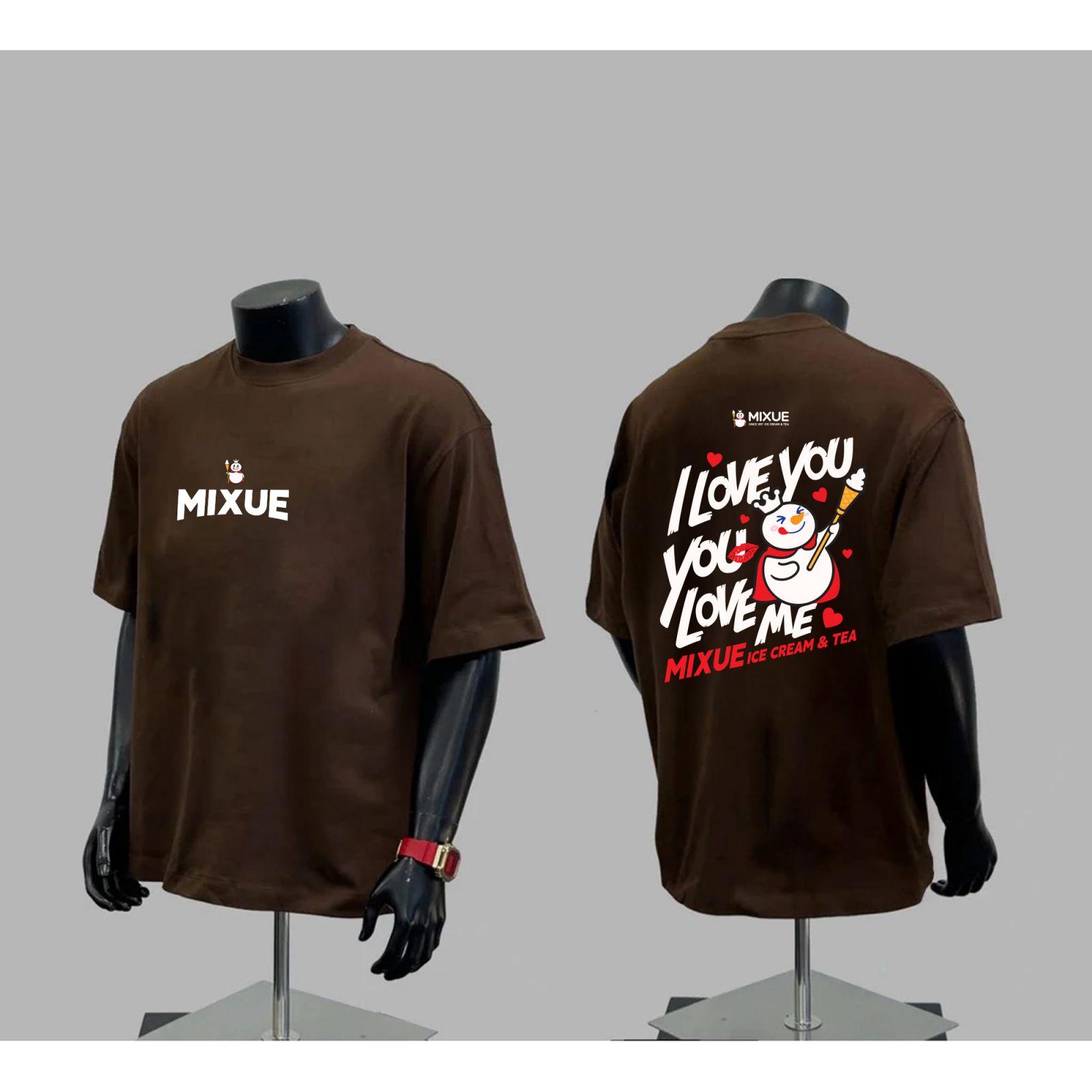 Áo thun đồng phục trà sữa Unisex 01 được thiết kế theo phong cách năng động – hiện đại – nhận diện mạnh, phù hợp cho quán trà sữa, ice cream & tea, chuỗi đồ uống